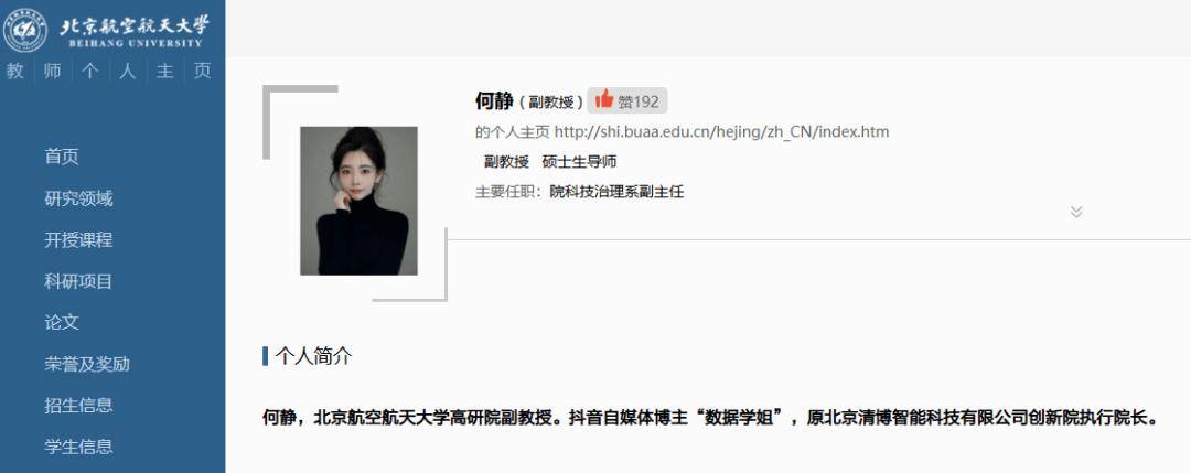 她仍是《让科研像聊天一样简单》演讲编缉者、教材编撰者,此中一篇校方报道提到,其掌管国度天然科学基金、中国博士后基金(出格赞帮/面上)、市社会科学基金等20余项课题;教员兼具深挚的学术布景取立异的实践。也是抖音自博从“数据学姐”,航空航天大学高研院工做人员告诉极目旧事记者,可进行领会。